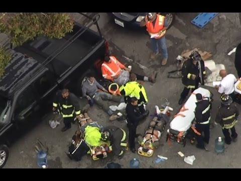 At the building collapse, video taken by a worker in the seconds after the collapse and obtained by local television station KGO showed at least three workers in hardhats and yellow and orange vests in midair, clinging to metal cables and rods to keep from falling.