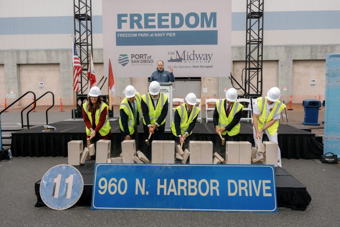 Work includes the demolition of the large head-house building situated at the entrance of the pier, making space for the development of Freedom Park, as announced by port officials. Using golden sledgehammers, participants of the groundbreaking ceremony will ceremonially break cinderblock pavers to officially launch the project.