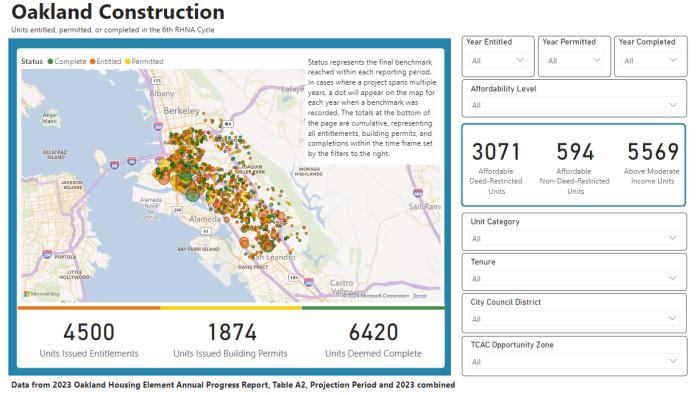 The City of Oakland has launched a new interactive dashboard to track progress towards meeting the city’s state-allocated housing goals.