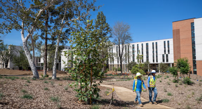 Construction crews are putting the finishing touches on UC Riverside’s new student housing complex project in advance of its opening next month.